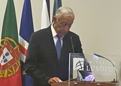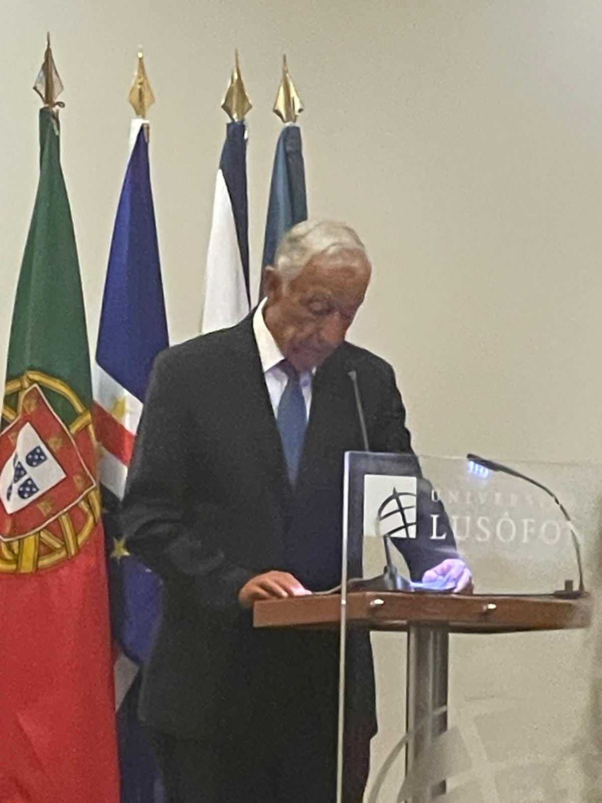 Seguiu-se o elogio ao novo Doutor proferido pelo padrinho académico, Sua Excelência o Presidente da República de Portugal, Professor Doutor Marcelo Rebelo de Sousa, que enalteceu o papel do homenageado como estadista e defensor da democracia e da educação em África.