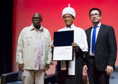 O Reitor da Universidade Lusófona, Professor Doutor José Bragança de Miranda, efetuou a atribuição solene do título de Doutor Honoris Causa a Sua Excelência o Presidente José Maria Neves, que encerrou a sessão com a sua alocução, expressando palavras de gratidão e de compromisso com a educação e a cooperação lusófona. A cerimónia terminou com um momento musical, simbolizando o espírito de união e partilha que marcou todo o evento.